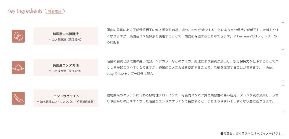 毛髪を保湿する純国産コメヌカ油*1とエンドウケラチン*2を配合。